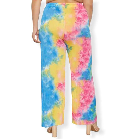 Tie Dye Multicolor Plus Size Wide Leg Women's Pants
