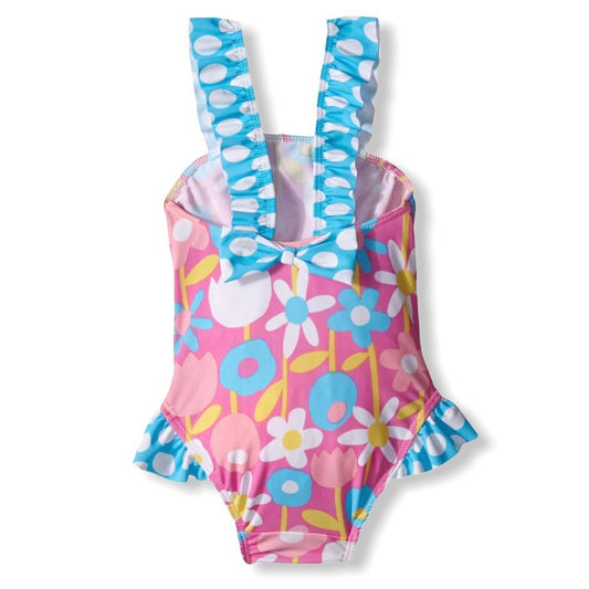 Pink/White/Blue One Piece Swimsuit Size 2 Little Girl Swimwear