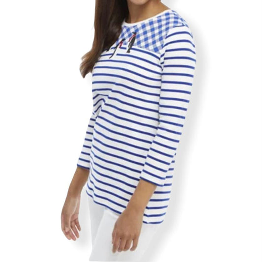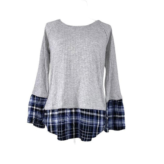 Long Sleeve Gray/Blue Plaid Scoop Neck Size S Women's Sweaters