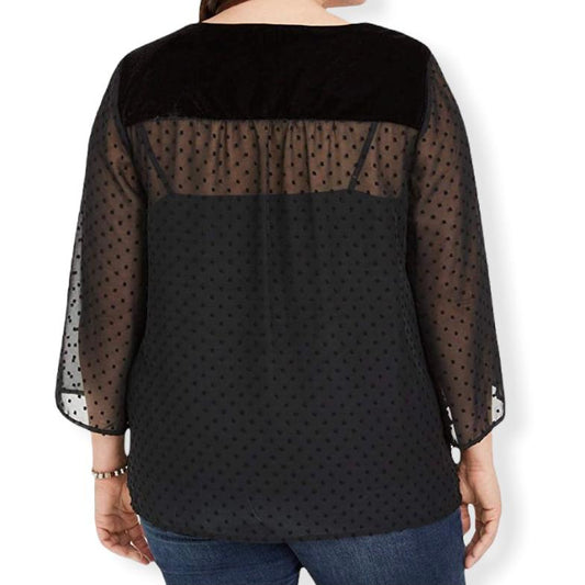 V-Neck Swiss Dot Top Plus Size Women's Blouses