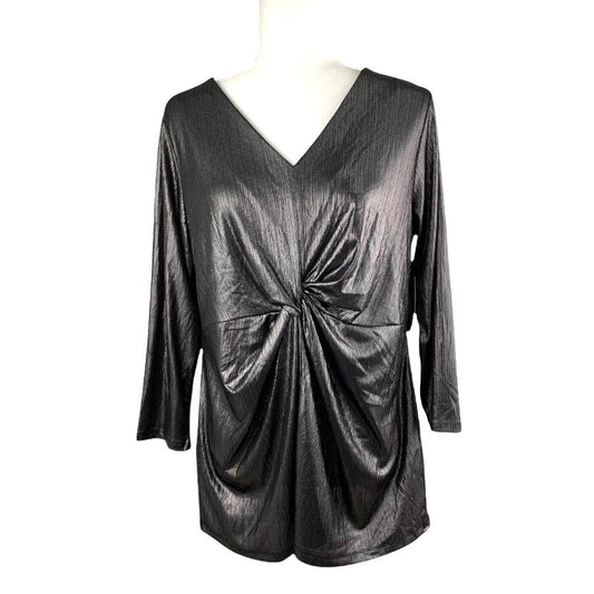Metallic Shimmer Twist front Top Plus Size OX V-Neck Women's Blouses